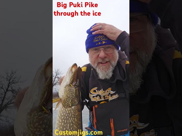 Big Pike Release thru the ice! #icefishinglife #icefishing #icefish@CustomJigsSpinsInc